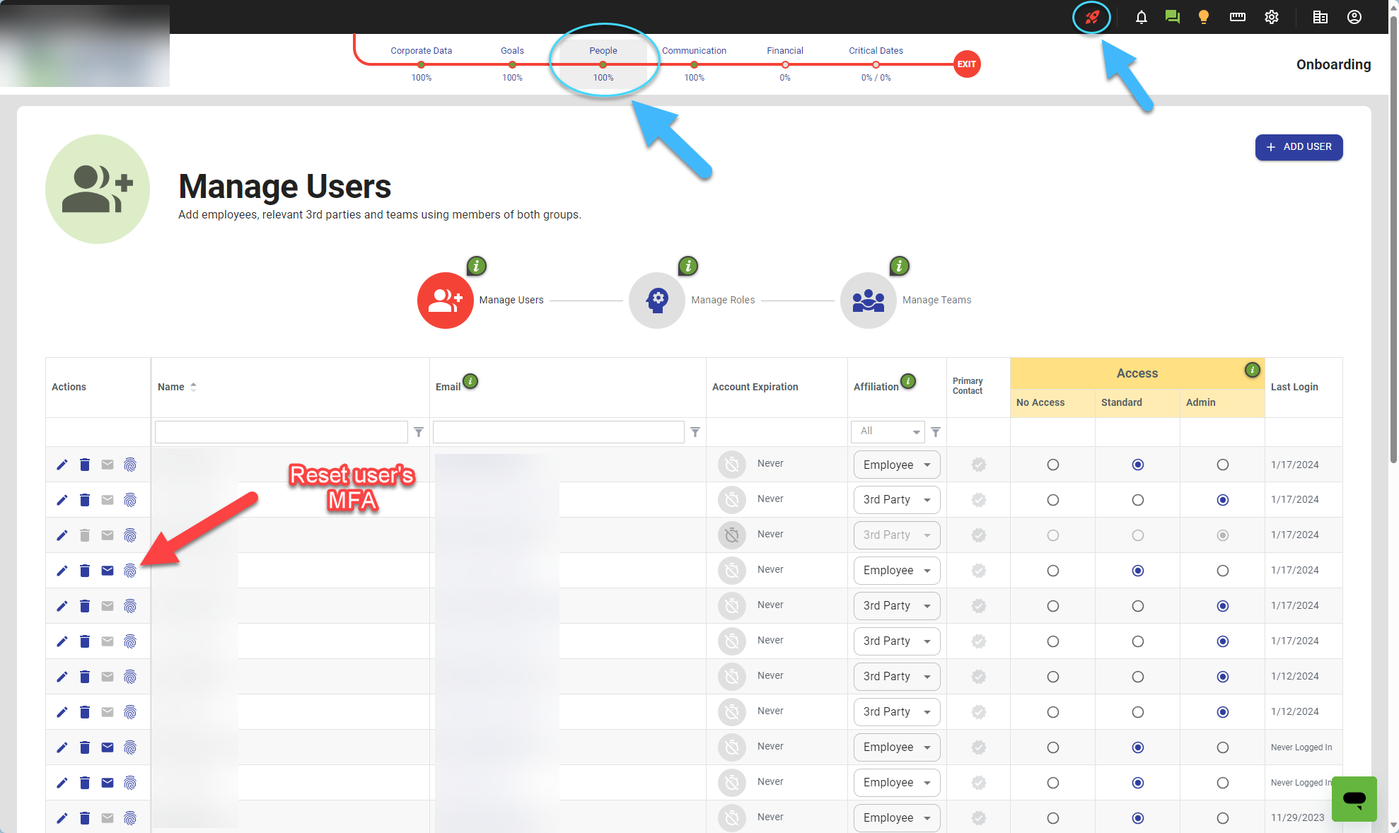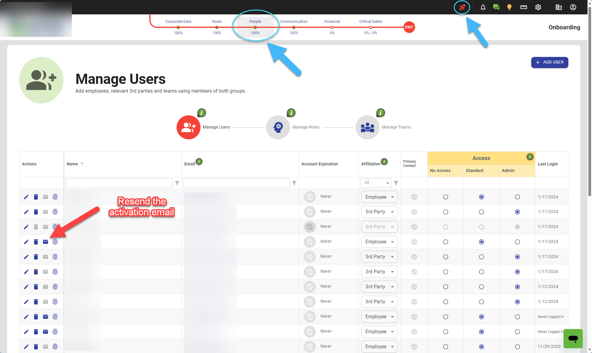 - Click on the Onboarding (red rocket) icon
