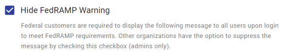 - Enable the check box next to the Hide FedRAMP Warning option, as illustrated below.
