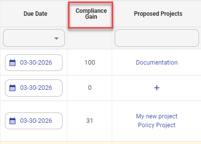 Your FutureFeed includes a column labeled "Compliance Gain." This column is meant to be used to differentiate those items that are likely to have the most impact on compliance from the others.